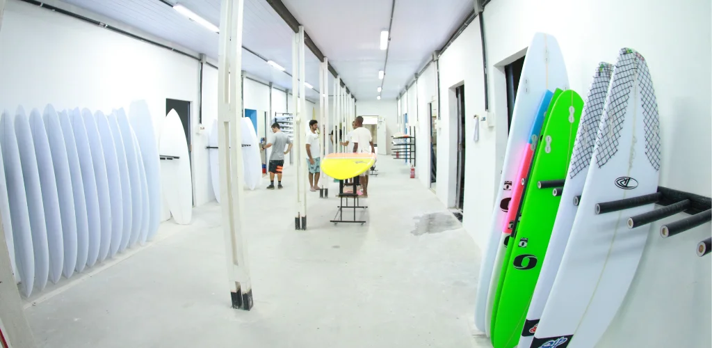 Em 2016 acontece a segunda grande mudança. Com o intuito de expandir novamente nossas operações, decidimos que além da produção terceirizadas para as marcas, teríamos um espaço onde, a fabricação e a venda das pranchas caminhariam juntas, oferecendo uma experiência única para público em geral unindo em um só lugar: Fábrica, loja e assistência técnica especializada.
